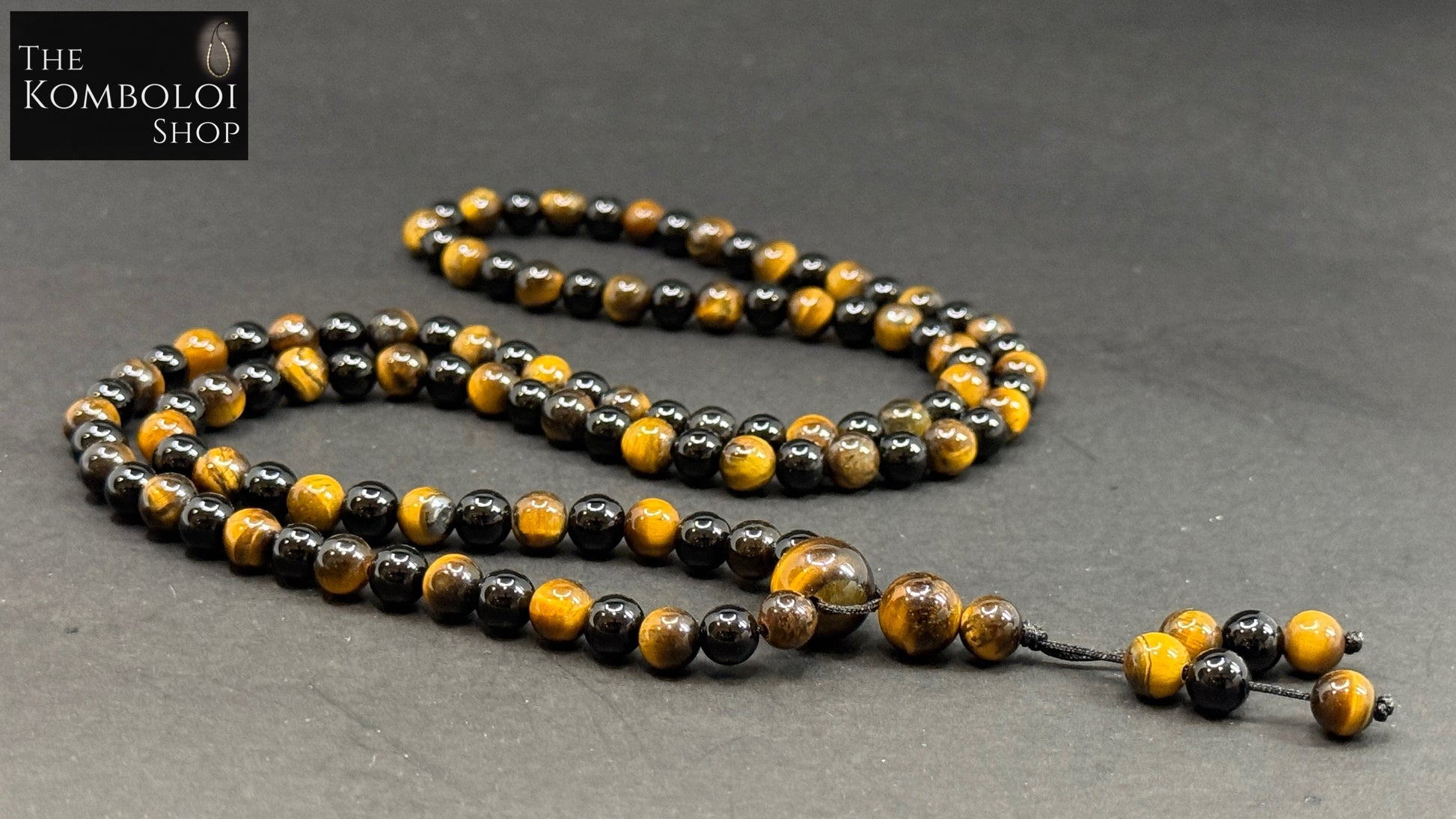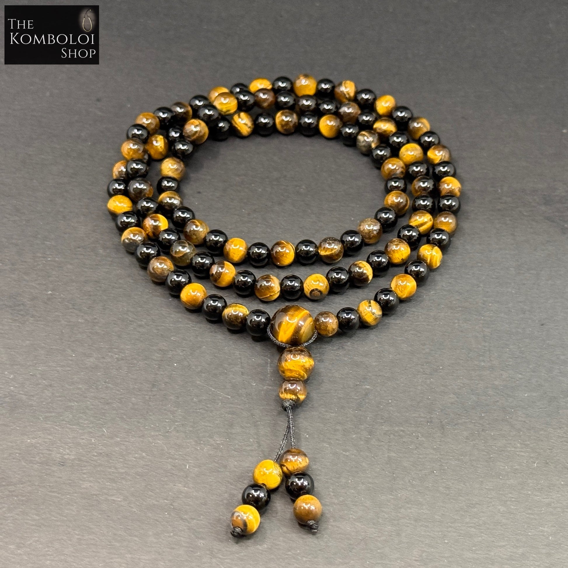 Bold and balanced, this Mala features 108 polished Tiger’s Eye and Onyx beads, combining rich golden tones with deep black for a striking, refined finish.