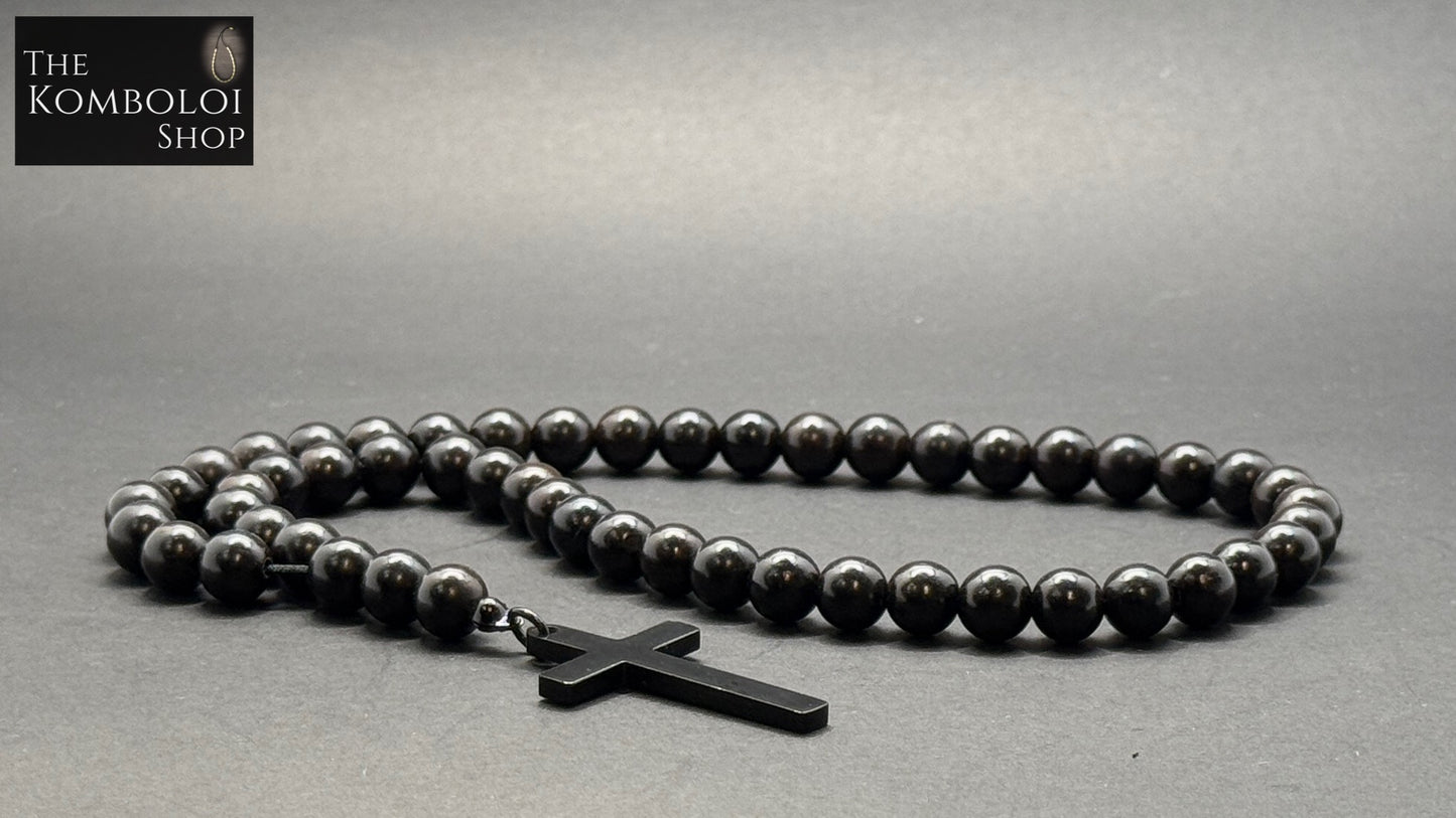 Ebony 50 Bead Orthodox Prayer Beads with Stainless Steel Cross
