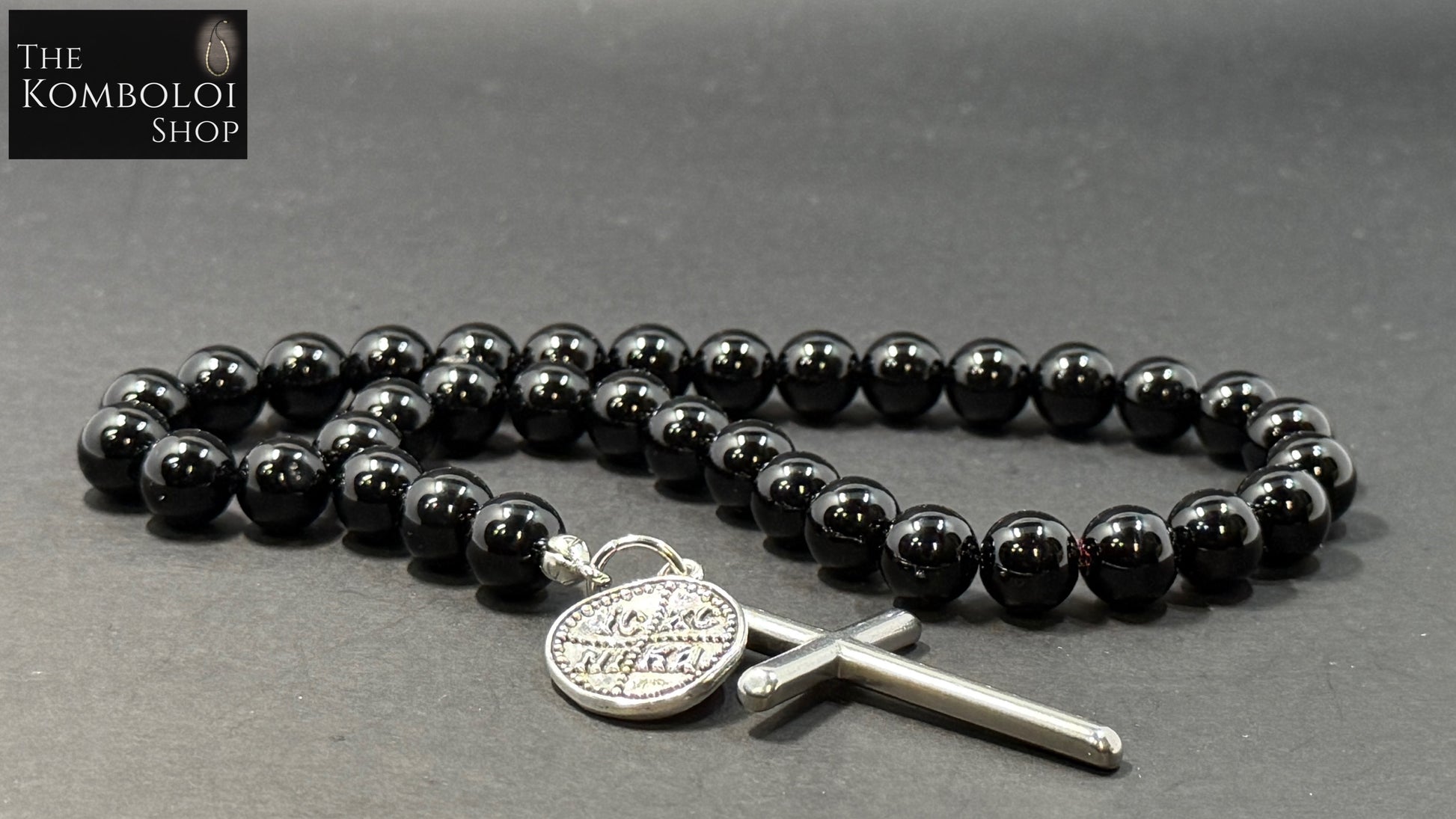 Onyx 33 Bead Orthodox Prayer Beads with Stainless Steel Cross & ICXC NIKA