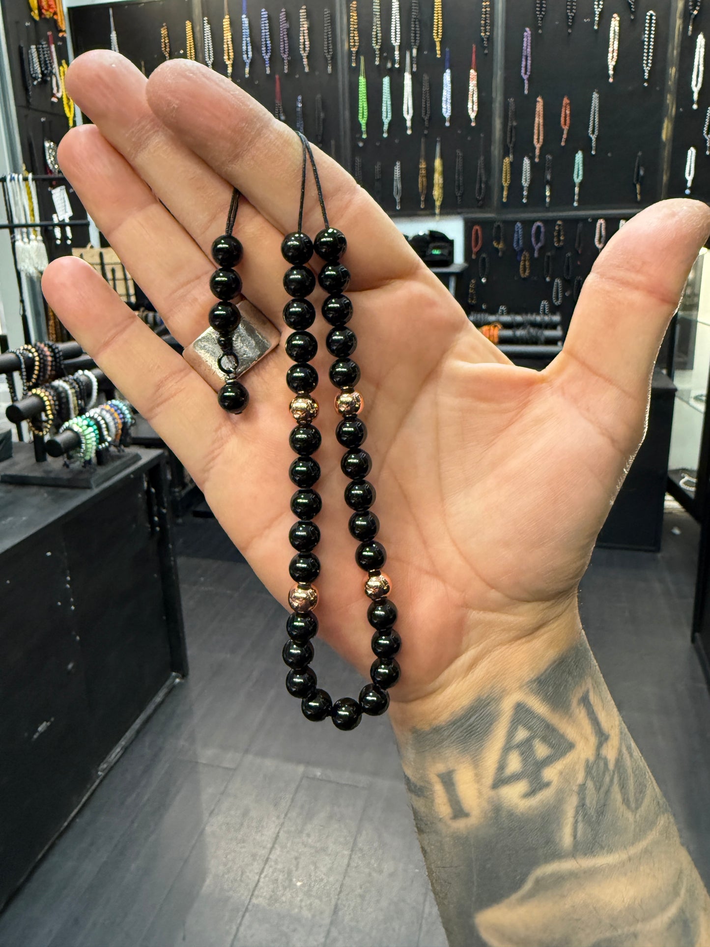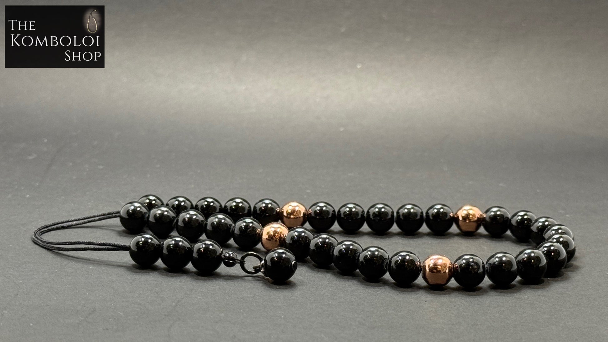 Onyx & Solid Copper 33 Bead Komboloi / Worry Beads