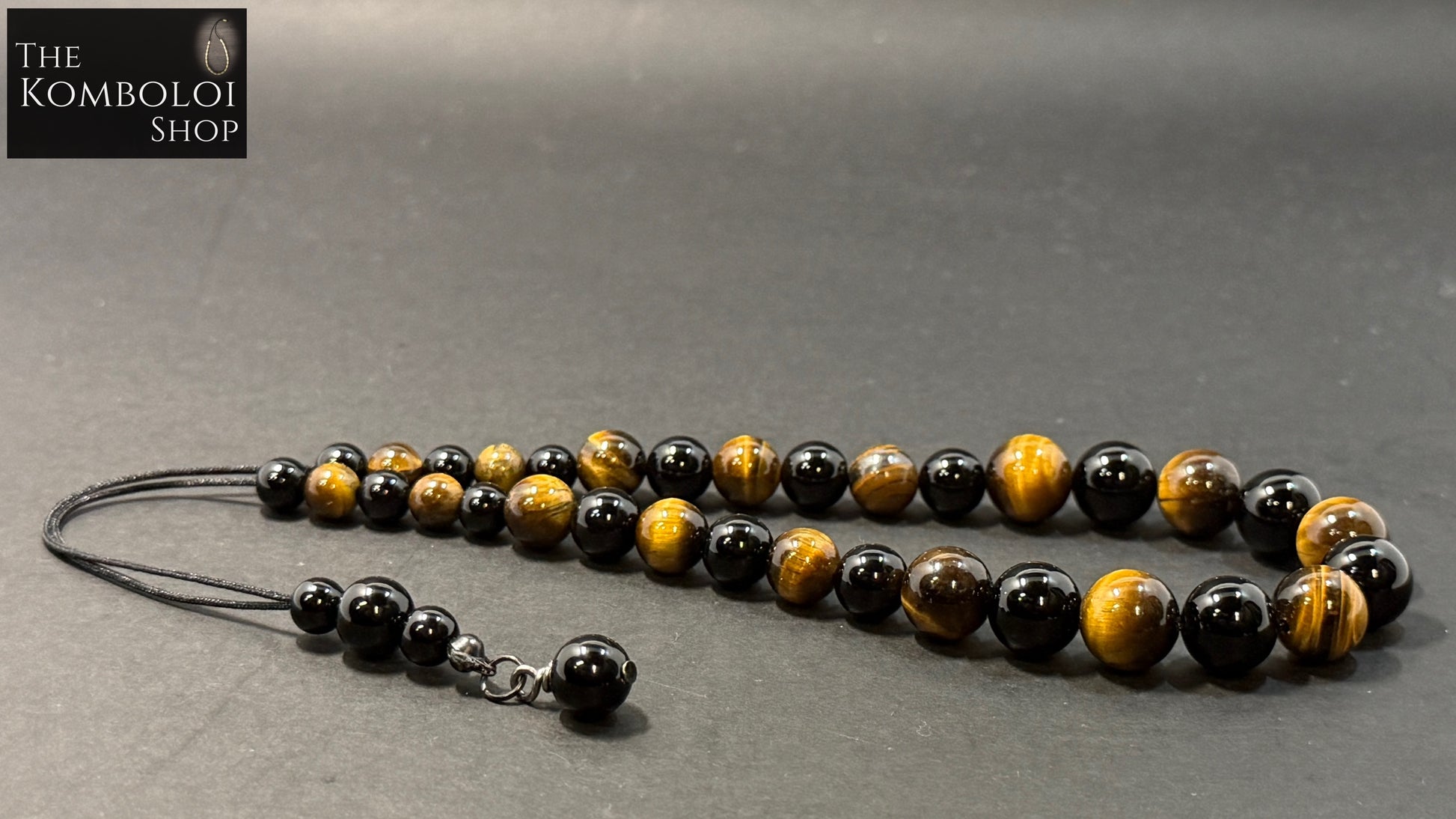 Onyx & Tigers Eye Cascading 33 Bead Komboloi